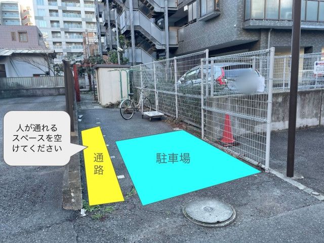 川崎駅まで徒歩11分のところにある、予約ができるアキッパ駐車場です。この駐車場の利用時間は24時間で、収容台数は1台です。利用料金は、平日・土日祝日共に15分70円・1日最大740円となっています。車両制限は、長さ400cm、車幅200cm以下で、オートバイ・軽自動車・コンパクトカーが利用可能です。駐車場をする際は、住人の方が通れるようにスペースを空けてからとめてくださいね!